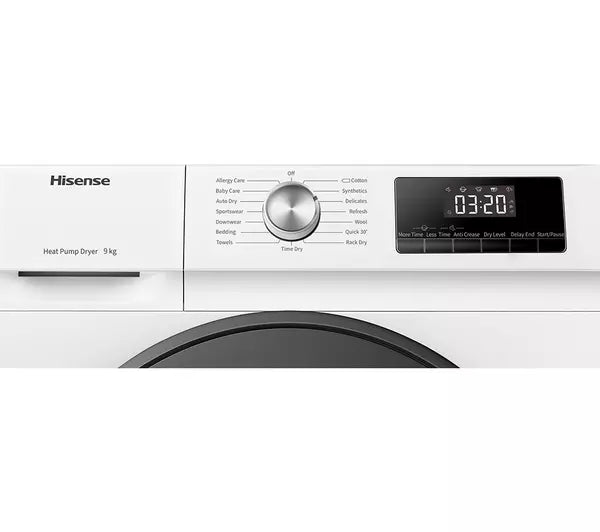 Say goodbye to the clotheshorse and hello to this Hisense tumble dryer. Its 9kg drum makes easy work of 3 or 4 people’s dirty laundry. And because it’s kitted out with nifty heat pump tech, it uses less energy, making it kinder on the environment and your bank balance. Lovely. Not going to be in when the cycle finishes? No problem, just use the delay timer and it’ll start when you want it to, so there’s no danger of your tops sitting in a crinkled mess until you get home. There’s even a half load function that’s perfect for those small batches of PJs and sweatpants, cutting down the time of the cycle to get everything perfectly dried. Ready to stop decorating your house with drying undies? Us too.