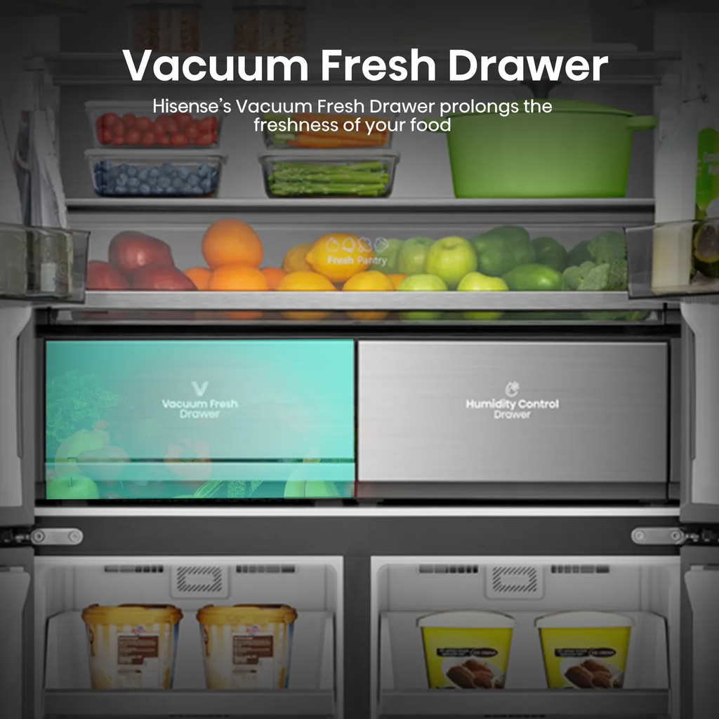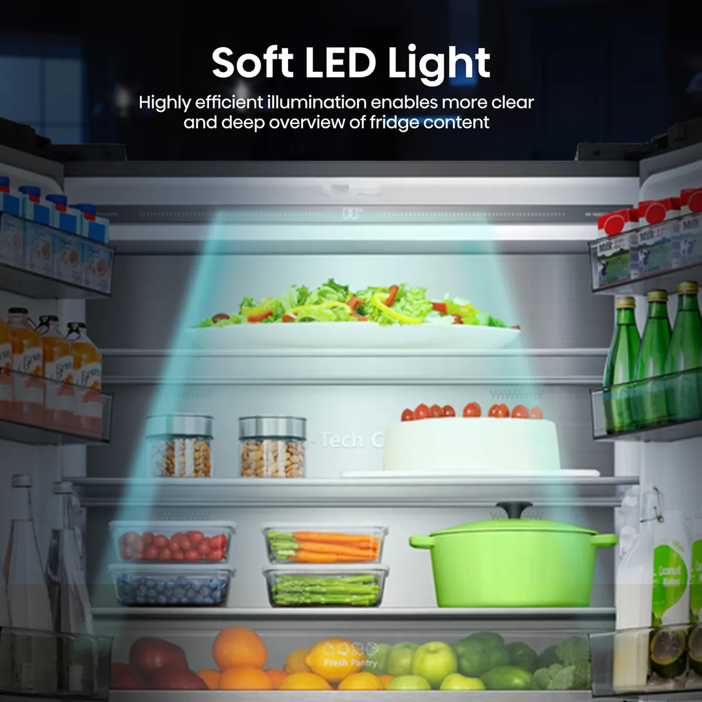 With this spacious Hisense American fridge freezer, you’ll be able to stock up on enough options for even the pickiest eaters. We all love a from-scratch dinner, but if it’s frozen pizza on the menu tonight, you won’t have to grab a scraper to get to it. The Total No Frost system maintains even temperatures to keep icy build-ups to a minimum. All the while, the clever Metal-Tech Cooling evenly distributes cold temps to keep your fresh ingredients as good as new - perfect if you’re pushing that new recipe idea to tomorrow. The Inverter Compressor makes sure cooling levels are kept stable to reduce noise and power usage. So, it doesn’t just save your food but your energy bills too.
