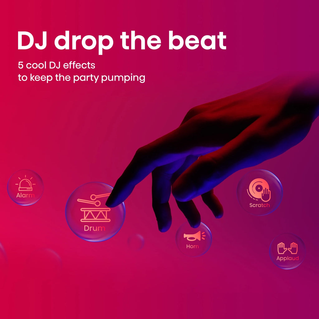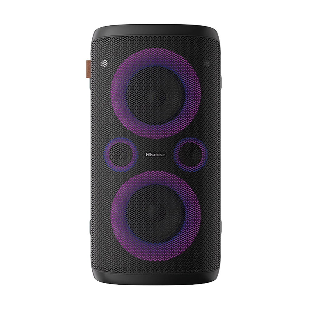 The Hisense Party Rocker One (HP100) is a portable Bluetooth party speaker designed to deliver powerful sound and vibrant lighting effects for an immersive party experience. With its 300W of power and 4 speakers, the Hisense Party Rocker One is the ideal party speaker. Activate the “Bass” mode for even more atmosphere. The Party Rocker One lets you organise sublime parties that will go on until the end of the night, thanks to its 15-hour battery life. Make crazy transitions. Plug in a microphone and turn the room where you’re holding the party into a real concert hall. All the most popular artists of the moment will have nothing to fear. With its 4 speakers and total maximum power of 300W, the Hisense Party Rocker One is the ideal partner for your parties. 6 audio modes are available: Rock, Jazz, Samba, Pop, Bala & Extra Bass so you can enjoy your favourite tunes. The Hisense Party Rocker One’s multi-coloured flashes will brighten up your indoor or outdoor parties.