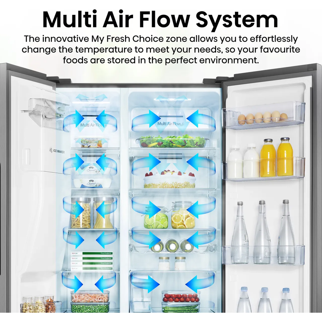 Whether it’s a quick grocery run or a hefty weekly shop, this Hisense American fridge freezer looks after your family favourites. There’s a ton of space for all your bottles of pop and pineapple pizzas thanks to its adjustable shelves. And if you’re parched after that supermarket spree, you can chill out with a cool drink thanks to the handy water and ice dispenser. Cubed or crushed? The choice is yours. Plus, if you’ve ever struggled to see what’s hidden at the back, you’ll be glad to know there’s a convenient interior light too – no chance of forgotten condiments gathering dust here.