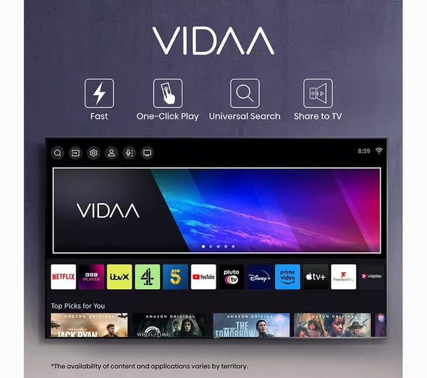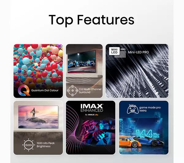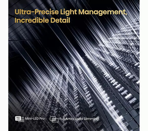 Whether you’re a movie-marathoner or a box-set binger, what better way to get your screen fix with this 55-inch Hisense MiniLED smart TV? Its 4K Ultra HD screen paired with Quantum Dot Colour tech give you a simply stunning picture whatever you’re watching, with detail so real you could almost touch them. Meanwhile, the clever Hi-View Engine is on hand to give older titles a makeover, bringing them up to the same amazing quality as the latest hits. And Dolby Atmos® audio will surround you with booming bass, epic soundtracks, and subtle whispers in the realistic quality it deserves. You’ll have loads to keep you busy too, since the four HDMI ports let you hook up Blu-ray players, consoles and more.