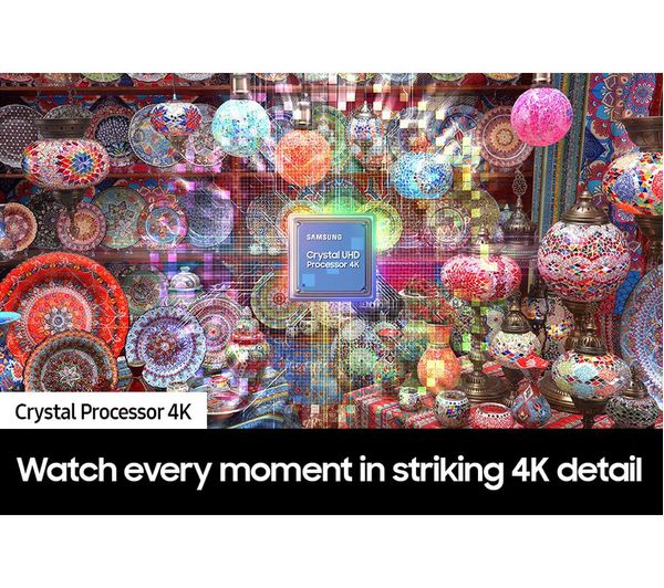 Get a load of this impressive 85/75/65-inch Samsung 4K Ultra HD TV with its incredibly clear resolution. Watching a golden oldie? Then you’ll love 4K Upscaling. It analyses the picture to enhance every frame, so all your classic faves will look brand new. It’ll even give the audio the same treatment with Adaptive Sound automatically adjusting everything to the perfect settings. It’s a treat for your eyes and ears. And when you’re not sure what to watch, Samsung TV Plus gives you access to lots of films and shows all for free. Plus, if your Xbox is hooked up in your games room and you don’t fancy moving it downstairs, just login on your TV and it’ll stream through the internet with the Gaming Hub. No need to faff about.